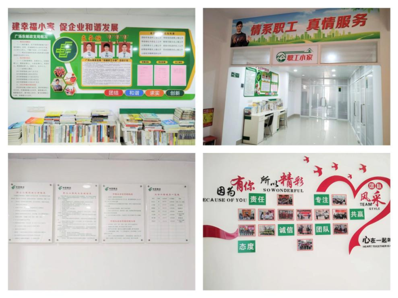 阳江市分公司阳西广场东营业所原名阳西蒲牌支局,2010年荣获“全国模范职工小家”称号。由于业务发展需要,2011年5月搬迁至阳西县城并更名为广场东营业所。阳江市总工会检查组认真听取了广场东营业所小家建设和管理情况、工作成效及今后努力的方向,并现场察看了小家建设场所和环境,对员工饱满的精神面貌,具有特色主题的“家文化”园地点赞!赞扬广场东职工小家积极作为,努力为每一位员工提供实实在在的服务,打造大家认可的心灵小家、幸福小家。