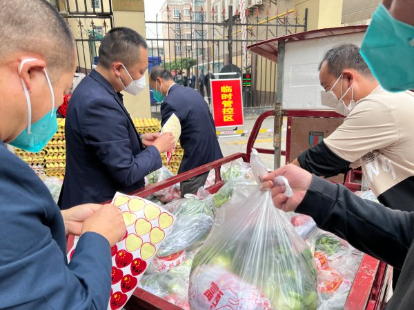 小区内职工和家属无法外出采购食物,12日,长安区分公司迅速部署,工会主席跟领导班子带领职工为邮政新村里每一户职工和退休职工家庭采买鸡蛋、肉、蔬菜等物资,送到家属院门口,解决家属院居民当下的生活问题。