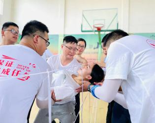 活动开始,在心理咨询师的引导下,大家闭目静心,跟随着轻柔音乐,开始“正念冥想”。随后大家站立坐在一起开展“齐心协力”互动游戏,在游戏中提高对压力情绪的认知,并对自身的潜意识和其他心理活动进行自我觉知、反思和调控。