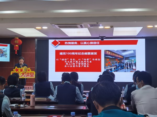 为树立典型,发挥先进示范作用,营造“比学赶帮超”的干事氛围,11月2日下午,九龙坡区分公司在跨年战役启动会之际,开展了“勇当先锋 誓立新功”员工大讲堂主题演讲活动。区分公司四名骨干分别在管理、金融、邮政、寄递四个条线作为代表进行了本次《员工大讲堂》活动讲演,演讲者们密切联系工作实际,讲述了他们与邮政共成长的动人故事和工作中所获得的先进经验,在场人员无不被他们勤勉工作、勇于开拓的精神所感动。通过此次主题演讲活动,展示了九邮员工为邮政事业发展奋勇拼搏的精神风貌,为打好跨年战役提供了强有力的思想保证,激励着九邮全体员工以“干、实干、人人干”的精神加快推动九龙坡邮政高质量发展。