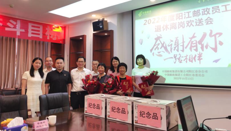 为进一步提高退休员工的荣誉感和归属感,近日,阳江市分公司工会为2022年光荣退休离岗的同志举行退休欢送会,市分公司副总经理、工会主席陈泽清及相关部门负责人出席活动,为退休员工颁发退休光荣证书,送上鲜花、并发放慰问品。
