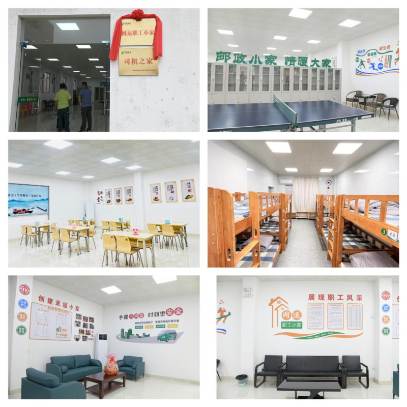 阳江网运职工小家利用网运中心生产大院院内空置场地建成,占地面积达200平方米。结合基层员工实际需求,按功能分区建成休息室、食堂、活动室等场所设施,配置空调、床品、沙发、书柜、乒乓球桌等一批设备,切实解决网运员工用餐、休息、学习和娱乐的需求。网运小家还根据集团公司职工小家建设的要求,结合邮运司机生产的特点,融合党性教育、民主管理、安全生产、厉行节约等元素,打造有邮运司机特色的“家文化”展示墙,让网运员工拥有一个温暖的港湾,进一步提升员工归属感,真正让邮政小家情暖大家。