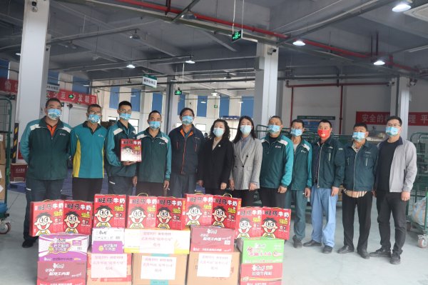 为进一步做好“双11”旺季期间揽投员关心关爱工作,努力让一线员工感受到工会组织的关爱温暖,11月9日,武隆区分公司领导班子带队到处理中心开展“暖峰行动”慰问。分公司总经理任丽华、副总经理熊小敏亲切与员工交流,了解员工真实诉求,现场为他们送上牛奶、自热火锅,方便面,面包、防疫物资等慰问品,切实解决揽投员在就餐、饮水、防疫等方面实际困难,同时叮嘱大家要做好自身防护,关注身心健康,以良好的精神状态投入到旺季生产工作。