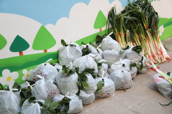 逸景家园社区书记代表工作人员和居民,向关心和支持社区疫情防控工作的马驹桥邮局表示衷心的感谢和敬意。 图为保障居民能够吃上新鲜的蔬菜,工作人员及时在每个蔬菜包上写下门牌号,放入鼓励信,然后由大白送至居民手中。