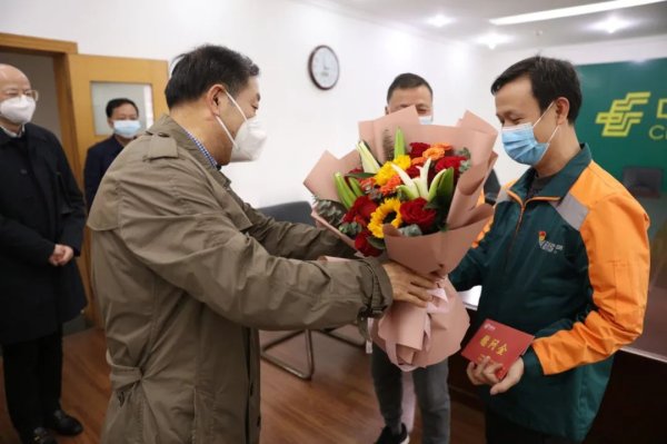 1月10日下午,江西省分公司党委委员、副总经理、工会主席戴书华一行来到南昌邮区中心,走访慰问了江西省劳动模范王金珍和全国最美货车司机、江西省五一劳动奖章获得者李鹏,为他们送上了慰问金和鲜花,传递了省分公司党委和工会的关怀和温暖。