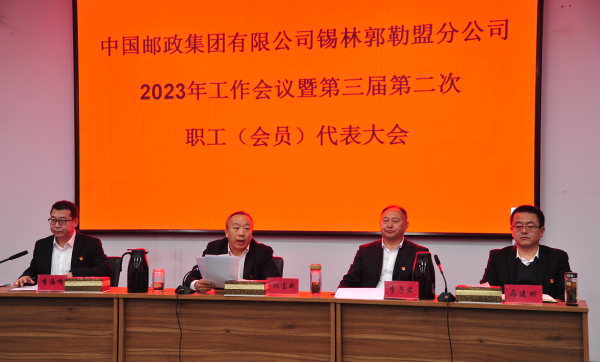 会上,党委书记、总经理杨宝新传达了区分公司蔡明辉总经理在全区邮政工作会议上作的行政工作报告的重点内容和主要精神,作了题为《贯彻落实党的二十大精神,持续提升在企业治理水平和治理能力,全面推进锡盟邮政高质量发展》的行政工作报告;工会主席李海峰同志作《深入贯彻二十大精神,竭尽全力贡献工会力量,为助力锡盟邮政高质量发展而奋斗》的工会工作报告。