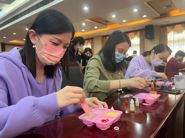 在手工做皂活动中,郑州市分公司专门邀请手工师傅为大家现场分享做皂原理,带领大家现场操作,让女同胞们在体验手工乐趣的同时,感受到集体活动的温馨,共同庆祝美好节日。