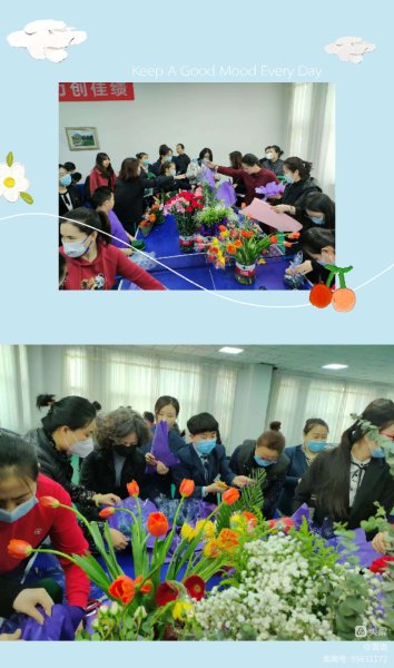在花艺师的精心指导下,百合花、勿忘我、红玫瑰、康乃馨等鲜花,经过女职工们精心巧妙的构思、修剪、整枝和装饰,变成了一件件精美的艺术品,充满诗情画意。这一活动,让大家在细碎的时光研磨中品味生活的明媚与浪漫。