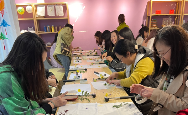 为了更好地体验这个美好的时刻,女职工们穿上了汉服,成群结队地在村庄里游走,拍照留念,营造出了节日气氛。女职工们穿着汉服体验印染活动,古色古香、原汁原味,仿佛穿越一般。