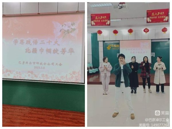 阳春三月莺恰啼,芳菲绘彩蝶翩跹。为庆祝第113个国际劳动妇女节,进一步提升女职工政治理论素养,增强女职工维权意识和自我保护能力,全面激发女职工立足岗位建功立业的热情,3月8日上午,巴彦淖尔市邮政工会组织机关各工会小组开展了以“学思践悟二十大 北疆巾帼绽芳华”为主题的庆“三八”活动。