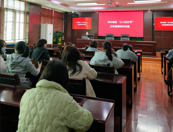 一是举办一次关爱健康讲座,传递“她温暖”。为更好地关爱女职工身心健康,提高女职工自我保健意识及疾病防治能力,在“三八”国际妇女节来临之际,3月1日下午,萍乡市邮政工会组织市本52名女职工开展了“三八妇女节”女性健康知识讲座,特邀市妇幼保健院中西医结合主治医生陈枫来授课。讲座上,陈主任从中医养生的角度,向大家深入浅出地讲解了女性中医养生及女性中医体质辨识及调理。讲座最后,陈主任还为女职工们把脉看诊,使广大女职工进一步了解日常保健的重要性,学会怎样在生活中锻炼、提高免疫力,切实保障自身健康,达到早预防、早发现,早诊断、早治疗的目的。