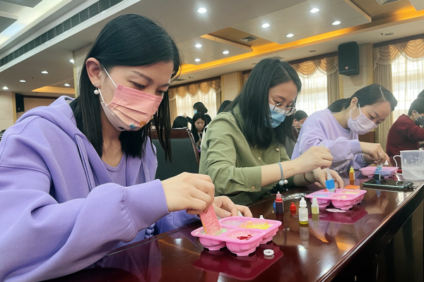 在手工老师的指导下,大家认真挑选原料,精心配色,充分发挥想象,沉浸在手工创作的乐趣中。大家边操作边探讨,不一会儿,一个个香皂逐渐成形,一个个作品完美展现,令人赏心悦目。当天,郑州市分公司还邀请了郑州人民医院疼痛科医生为大家带来一场如何缓解疼痛的健康讲座。