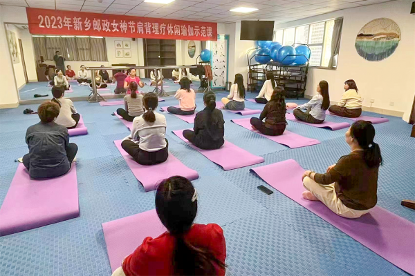 新乡市邮政分公司为女职工们准备了肩背理疗休闲瑜伽示范课,让大家享受瑜伽带来的愉悦与放松,丰富女职工们的健康知识。