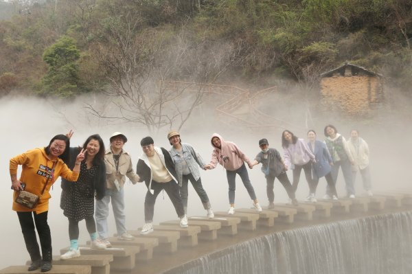 一大早,女职工们轻装上路,经过一个多小时的车程,来到了铜源峡景区。映入眼帘的是铜源峡自梅岭洗药湖绵延而下至幸福水库,千年不竭,两岸高山对峙、甚是壮观。大伙跟随导游走过玻璃桥来到一处游玩区,放眼望去,景色美如油画:大片大片的油菜花,随风摆动的秋千,绵绵细雨白雾笼罩的风车,风车下的动物饲养区有小鹿、小马和一群活碰乱跳的小白兔。大家纷纷拿起手机或自拍、或合影留念,还夹杂着一片片银铃的笑声。再往里走,峡谷幽然而蜿蜒、奇石错落而有致、飞瀑不断而唯美。走过水礁房,那扬起的香尘,象一阵轻烟久久不散,又平添了几分诗情画意,失神间好似置身于仙剑奇侠般幻境。三月的下雨淅淅沥沥,微风拂过大家的脸庞,疲惫和烦恼被一扫而光。愉快的时光总是稍纵即逝。女职工们在享用了农家小灶的午饭后,踏上了归程。