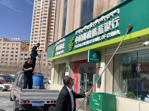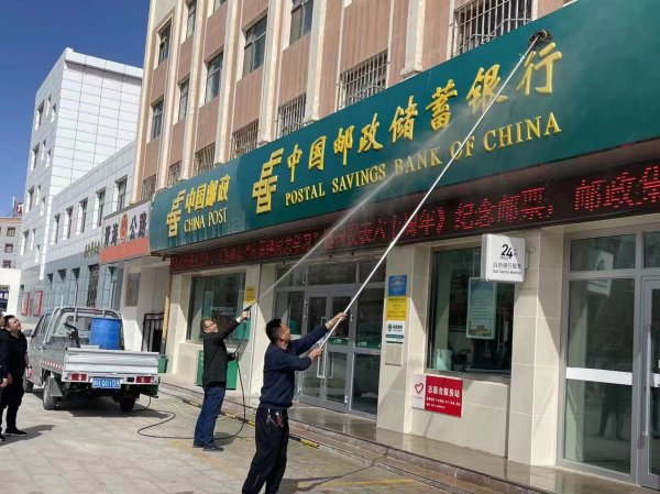 3月21日一早,在市分公司工会的统一安排部署下,办公室及市场营销部人员开着车载着水箱及喷水枪,长杆拖把前往格尔木市各营业网点。到达网点后,大家开始对门头进行整体冲刷,清洗过的门头牌匾焕然一新,干净靓丽,清洗现场一翻繁忙劳碌的景象。