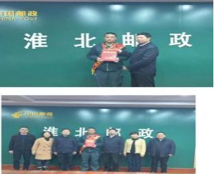 近日,淮北市总工会副主席张友明一行来到淮北市邮政分公司,亲切慰问安徽省劳动模范刘雷锋,并将安徽省劳模荣誉证书和奖章送到刘雷锋手中。