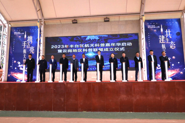 4月23日,在第八届中国航天日即将到来之际,2023年丰台区航天科普嘉年华暨云岗地区科普联盟成立仪式在首都师范大学云岗附属中学举行。中国邮政集团有限公司北京市丰台区分公司(以下简称丰台邮政)在启动仪式现场设置“飞航+邮”临时展位,同日在云岗邮局内开设的“飞航+邮”文化体验店正式开业。