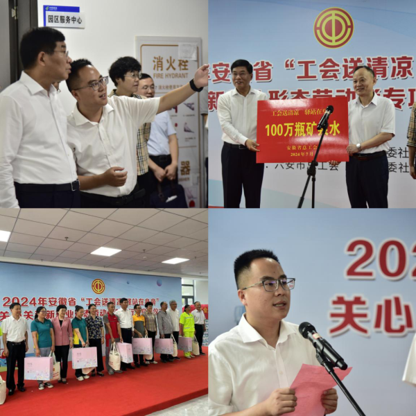7月9日上午,省人大常委会副主任、省总工会主席何树山一行赴金寨县寄递公共配送中心开展“工会送清凉 驿站在身旁”关心关爱新就业形态劳动者专项活动,并调研新就业形态劳动者工会驿站工作。省委、省总工会;六安市副市长、金寨县委书记等领导;部分新就业形态劳动者代表参加。在活动中,金寨县分公司作为全省工会驿站示范站点先进代表受邀进行了发言。现场倡议社会各界共同来关心关爱新就业形态劳动者和户外劳动者!