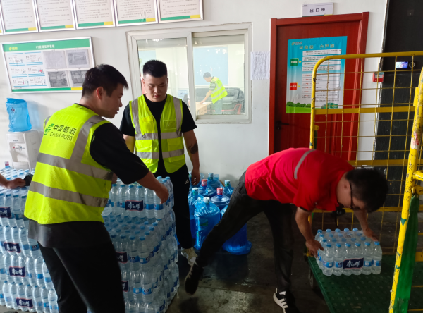 凉水、冰块、绿豆汤......今日齐上场,下午4点开班前,1600瓶矿泉水和24个大型冰块陆续送达邮件处理场地。为了让每个网格区域和生产现场所有人员都能感受到丝丝凉意,该中心同外包公司共同将冰块和凉水送至各作业区域。“生命安全永远放在第一,今日现场所有生产人员每人至少5瓶水,我们保证饮用水充足,如果发现身体不舒服第一时间找网格长,我们还配备防暑降温药品。”在该中心出口车间班前会上,现场工会工作者协同管理人员还就安全事宜一一强调。该中心工会组织在日温度达到35°及以上时向现场作业人员发放绿豆汤。