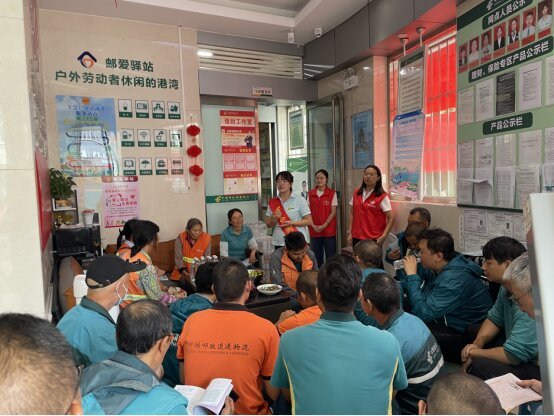 活动当天,志愿者们一大早就忙碌起来,准备了清甜可口的水果、矿泉水,为户外劳动者们带来了夏日的丝丝凉意。顶烈日、冒酷暑、战高温……城市建设离不开户外劳动者的汗水与付出,工会驿站的工作人员贴心叮嘱大家在炎夏日要注意防暑降温、安全出行、文明出行,热了、渴了、累了随时来驿站歇歇脚。这些清凉饮品为他们带来了身体上的舒适,声声叮嘱更传递了邮政对他们的关心与敬意。