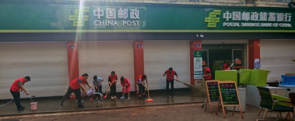 受强降水影响,重庆市荣昌区吴家镇、清流镇部分区域遭受洪水侵袭,情况十分严峻。7月15日一早,荣昌邮政及时启动抗洪应急预案,即刻组织机关20余名人员奔赴受灾网点抗洪抢险。现场,哪怕洪水已没入膝盖之上,大家仍无谓艰险,及时将网点重要空白凭证、票据资料、保险柜等重要物品全部安全转移,将洪水带来的损失减到最小。在洪水退去之后,工会主席李元敏又带领大家对网点内的淤泥、垃圾、杂物等进行全面清理消毒,同时,安排人员及时对设施设备进行修复或重建,确保网点供电系统、通信系统恢复。在大家齐心协力、众志成城之下,网点很快恢复了正常营业。