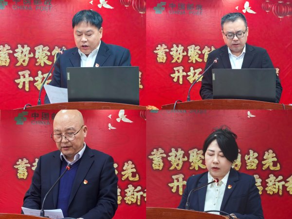 党委书记王伟作了题为《坚定战略自信 勇于担当作为 深化改革创新 多领域实现咸阳邮政高质量发展》工作报告,以“六个紧盯”全面回顾了2024年主要工作成效,并深入分析存在问题与发展形势,安排2025年重点工作任务。2025年是“十四五”规划收官之年,也是“十五五”规划的谋划之年。按照集团“全面构建十大体系,落实八项重点工作”及省分公司“七个加快”发展要求,通过“六大行动”构建咸阳邮政高质量发展新格局。即实施攻坚行动,确保全年目标稳中提质;实施深耕行动,确保央企责任稳中有为;实施转型行动,确保寄递改革稳中求新;实施升级行动,确保管理治理稳中加固;实施引领行动,确保党业融合稳中求进;实施共建行动,确保人文管理稳中向好。