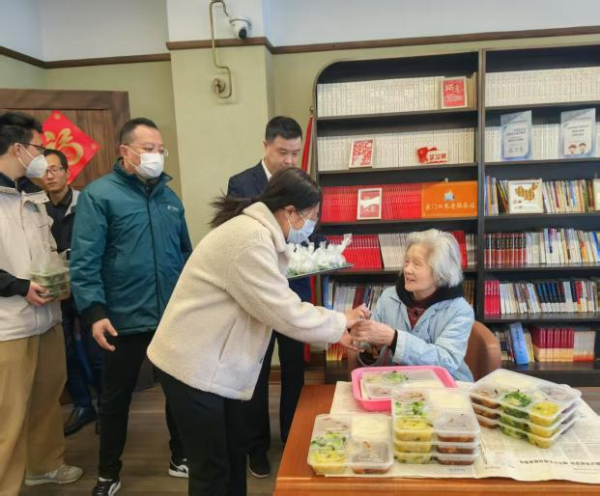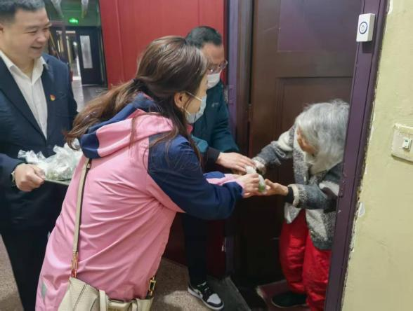 考虑到85岁以上高龄老人行动不便,大家分组前往老人家门口送上慰问服务。老人们接过这些手制的青团时,纷纷露出开心的笑容,还对餐饮中心长期送餐服务表达诚挚的谢意,夸赞邮政大楼食堂为老人们送上的餐食越来越营养可口。