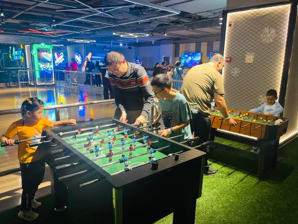 上午10时,参与家庭陆续抵达活动现场,拉开亲子趣味活动帷幕。活动现场划分多个主题区域:保龄球赛道传来清脆的撞击声,射箭区此起彼伏的喝彩声彰显着孩子们的专注;光影桌球、篮球机挑战区聚集着跃跃欲试的亲子组合,XBOX、SWITCH游戏机前则时不时发出共度过难关的掌声,既考验默契配合,又激发竞技热情。美食区提供的中西餐,让小朋友的味蕾得到满足。