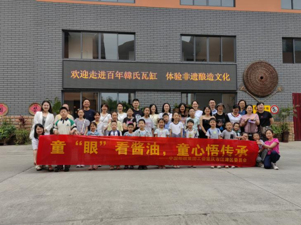 5月27日,江津邮政工会组织50组职工家庭到韩氏瓦缸酱园文化城,开展“童眼看酱油、童心司传承”六一主题活动,让孩子们近距离体验非遗酱油文化。