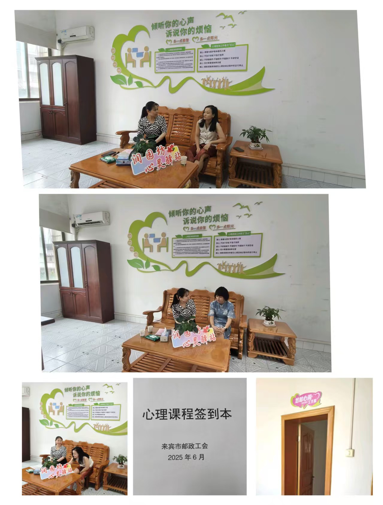 近日,来宾市邮政工会精心打造的《悠邮心阁》心理咨询工作室全面完工。6月12日,工作室迎来首位专业心理咨询导师——张素娟老师。张老师系市妇联特别派出,拥有丰富的心理咨询经验,当天为邮政员工带来了一对一的心理辅导课程。