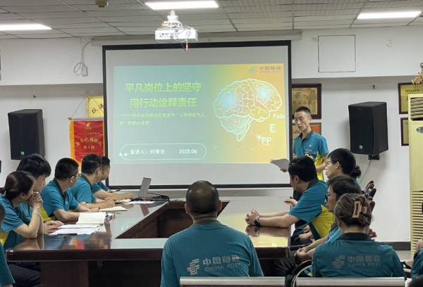 本次活动邀请本单位“重庆五一劳动奖章”“重庆市渝中区高层次人才”获得者何寿全作为本次宣讲的主讲人。宣讲会上,何寿全结合自身工作经历,用质朴的语言、真挚的情感分享了他在平凡岗位上的奋斗故事。自2007年加入邮政以来,何寿全收寄邮件超300万件,投递邮件超162万件,行经邮路超40万公里,服务客户超9000户,十余年零投诉。面对腰伤病痛始终坚持将责任扛在肩上,将使命放在心上,用实际行动托举起邮政的责任和担当,生动诠释了“人民邮政为人民”的初心使命。