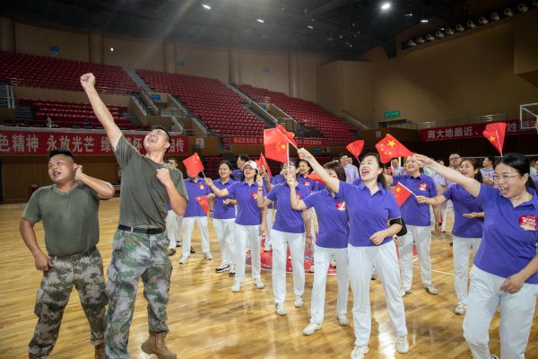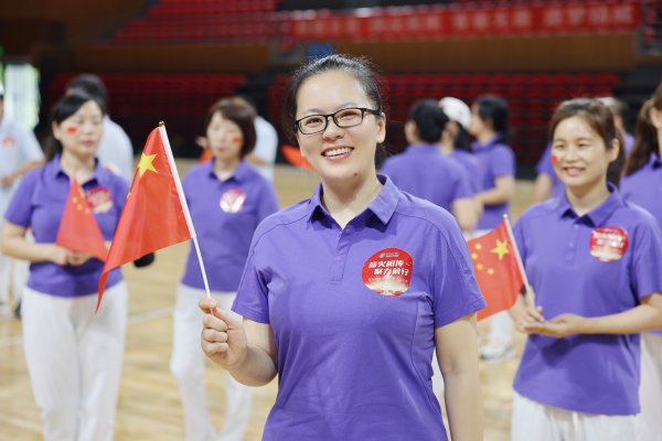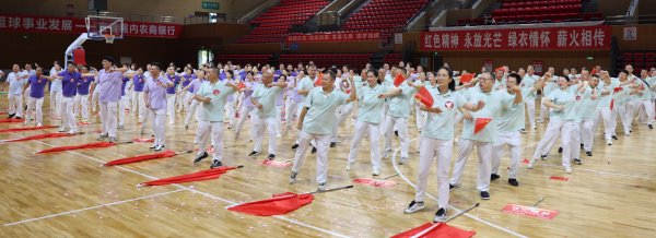 热身运动开始,和着“没有共产党,就没有新中国”的歌声热身舞跳起来,部门工会方阵之间的拉歌唱起来。一首首脍炙人口的红色歌曲唱响,让每位参与者在历史与现实的交织中,重温红色历史,传承红色文化,将“邮政绿”与“中国红”紧紧地交融在一起。