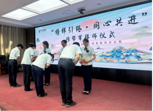 7月8日,阜阳邮政举办了第一届 “榜样引路 同心共进”传帮带拜师仪式,40对师徒结对成功。一场以老带新、以强带弱的人才培育热潮在阜阳邮政蓬勃开展。 此次活动充分发挥“传帮带”工作机制的重要作用,通过优秀支局长和理财经理的示范引领,加快培育一批业务精湛、能力突出的金融人才队伍。活动自启动以来,阜阳邮政精心组织,发布实施通知,积极引导各单位推荐优秀导师与潜力学员,顺利完成了师徒结对工作。拜师仪式上,师徒们郑重签订结对拜师贴,明确了活动的目标与要求,一份份拜师贴不仅是一份承诺,更是一份沉甸甸的责任与期许,为后续活动的开展奠定了坚实基础。 拜师仪式后,各项“传帮带”工作将有条不紊地推进。导师与学员每月开展“业务跟学日”,学员们跟随导师深入业务一线,在实践中学习先进经验和操作技巧;搭建交流平台,师徒将定期进行交流座谈,学员分享所学所思所得,导师对学员现场“说讲评;同时,双方撰写阶段小结,及时梳理学习与实践中的收获与不足。此外,还搭建了师徒交流群,积极组织群内线上案例分享活动,持续收集优秀案例和典型做法,并及时进行宣传推广,让好经验、好方法在全市邮政广泛传播和应用。下一步,阜阳邮政将持续完善“传帮带”制度,健全导师选拔和激励机制,总结经验,发挥各专业技能人才的榜样示范作用,为阜阳邮政高素质人才队伍建设提供坚实保障。