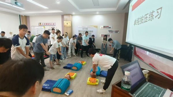 “按压频率要保持在每分钟100-120次,深度至少5厘米,按压时手臂要伸直……”7月下旬,杨浦邮政工会组织的线下实操培训现场,杨浦区红十字会的专业讲师正手持模拟人教具,为35名邮政职工细致讲解心肺复苏的操作要点。