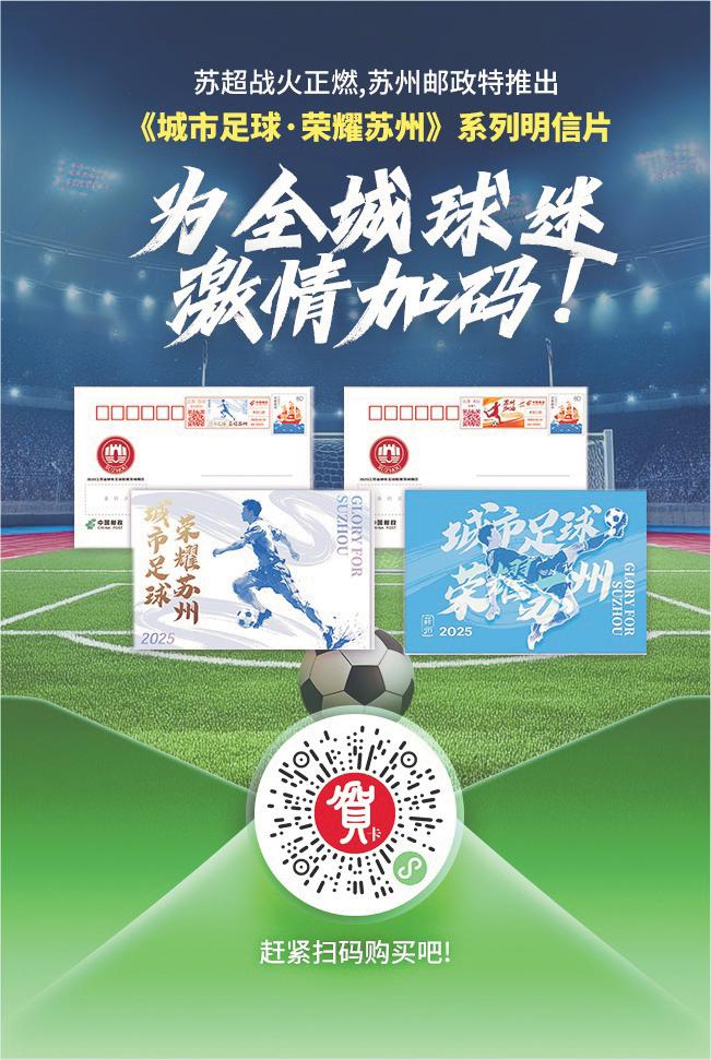 盛夏时节,江苏省城市足球联赛(简称“苏超”)激战正酣。作为赛事服务体系的重要组成部分,苏州市邮政分公司凭借官方独家授权和数字化业务创新,推出赛事纪念明信片寄递与抽奖互动服务,为广大球迷及收藏爱好者带来高品质、便捷化、参与感强的赛事文化体验。