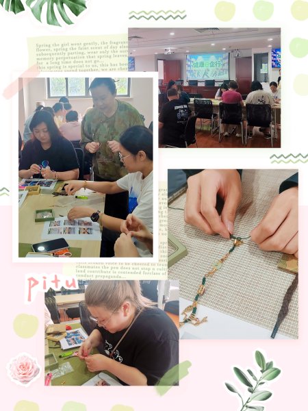 “绳子要拉紧,但也不能太用力,不然珠子会歪。”张老师手把手地教着一位新手,手指翻飞间,原本松散的彩绳渐渐有了手链的雏形。参与者们边编边说笑,把工作中的压力都融进了彩绳里,专注的眼神里透着对传统文化的好奇。