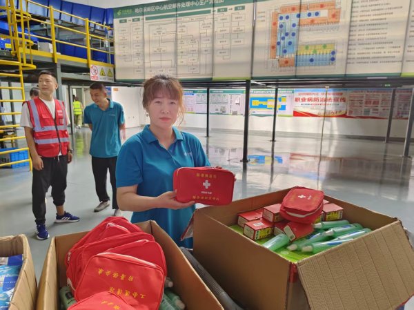 在物资保障方面,哈尔滨邮区中心工会为职工精心准备了防暑降温包,其中包含花露水、清凉油、藿香正气水、清凉贴、风油精等防暑降温用品。这些实用的物品能帮助职工有效应对高温天气,降低中暑风险。同时,工会发放了 400 余箱矿泉水以及 900 多箱茶和饮料,为在高温中忙碌的职工及时补充水分。考虑到高温环境下职工对冷饮的需求,工会专门为生产单位配备了 4 台冰柜,用于冷冻矿泉水和饮料,确保职工在高强度工作间隙,随时能喝到冰爽饮品,驱散暑气。