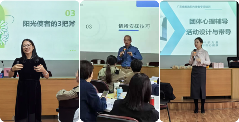 为积极响应中国邮政集团工会第二届心理健康宣传周活动号召,进一步加强广东邮政职工心理健康服务体系建设,培育全省邮政心理关爱种子人才,2025年10月22日-24日,广东省邮政“阳光使者暨心理关爱志愿者专项培训”在省分公司人才发展中心成功举办。来自全省各地市及直属中心的36名学员完成了一场为期3天的沉浸式学习之旅,为后续全省邮政心理健康宣传周活动落地储备专业力量。