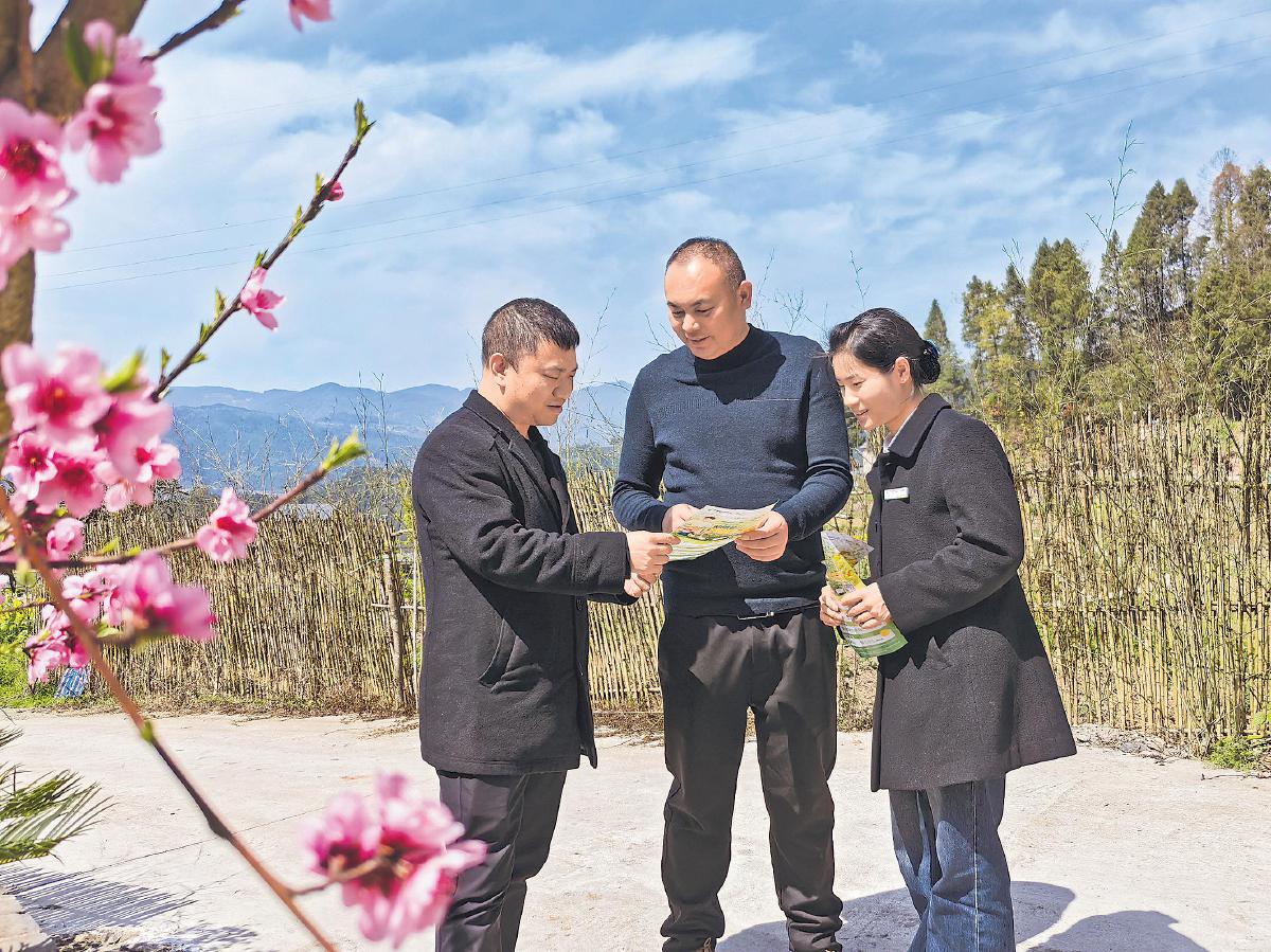3月11日,邮政与邮储银行工作人员联手将普惠金融知识及“融资E”业务宣传推广到农家院。□魏馨 摄