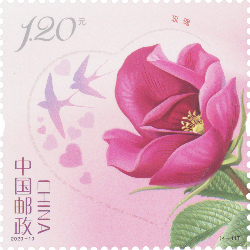 中国邮政定于2020年5月20日发行《玫瑰》特种邮票1套4枚。详情如下: