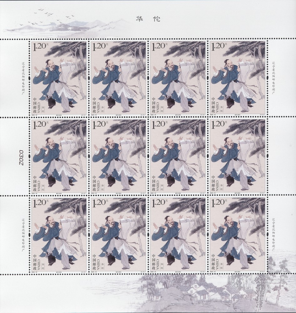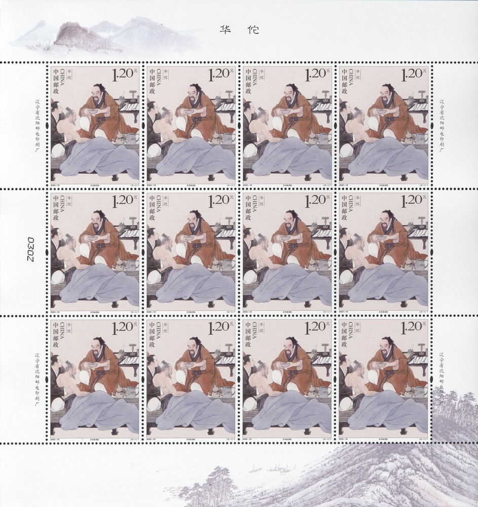 中国邮政定于2020年8月19日发行《华佗》特种邮票1套2枚,小型张1枚。详情如下: