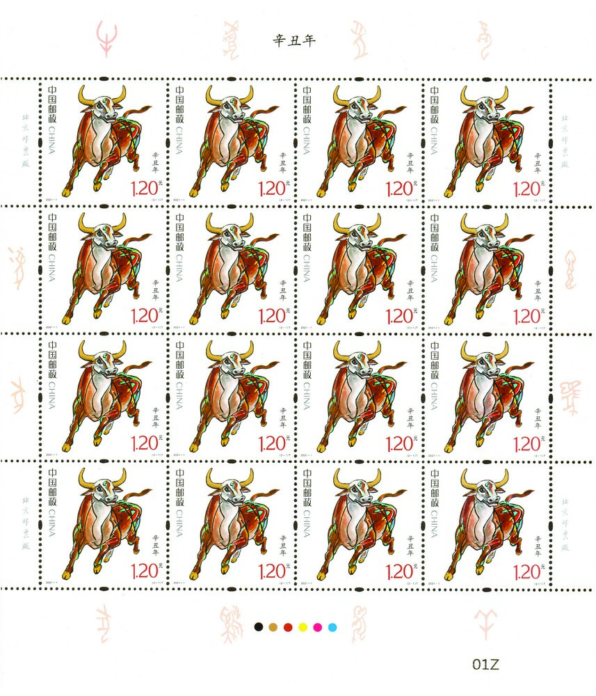 中国邮政定于2021年1月5日发行《辛丑年》特种邮票1套2枚,小本票1本。详情如下: