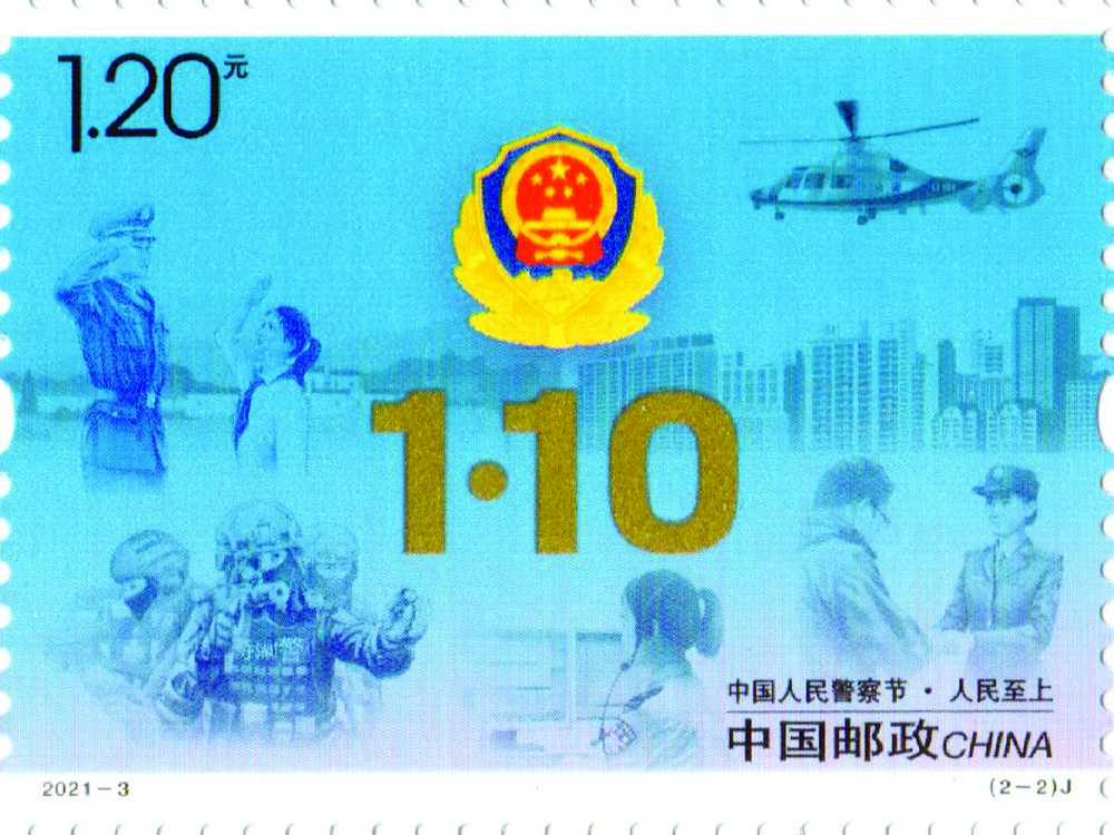中国邮政定于2021年1月10日发行《中国人民警察节》纪念邮票1套2枚。详情如下: