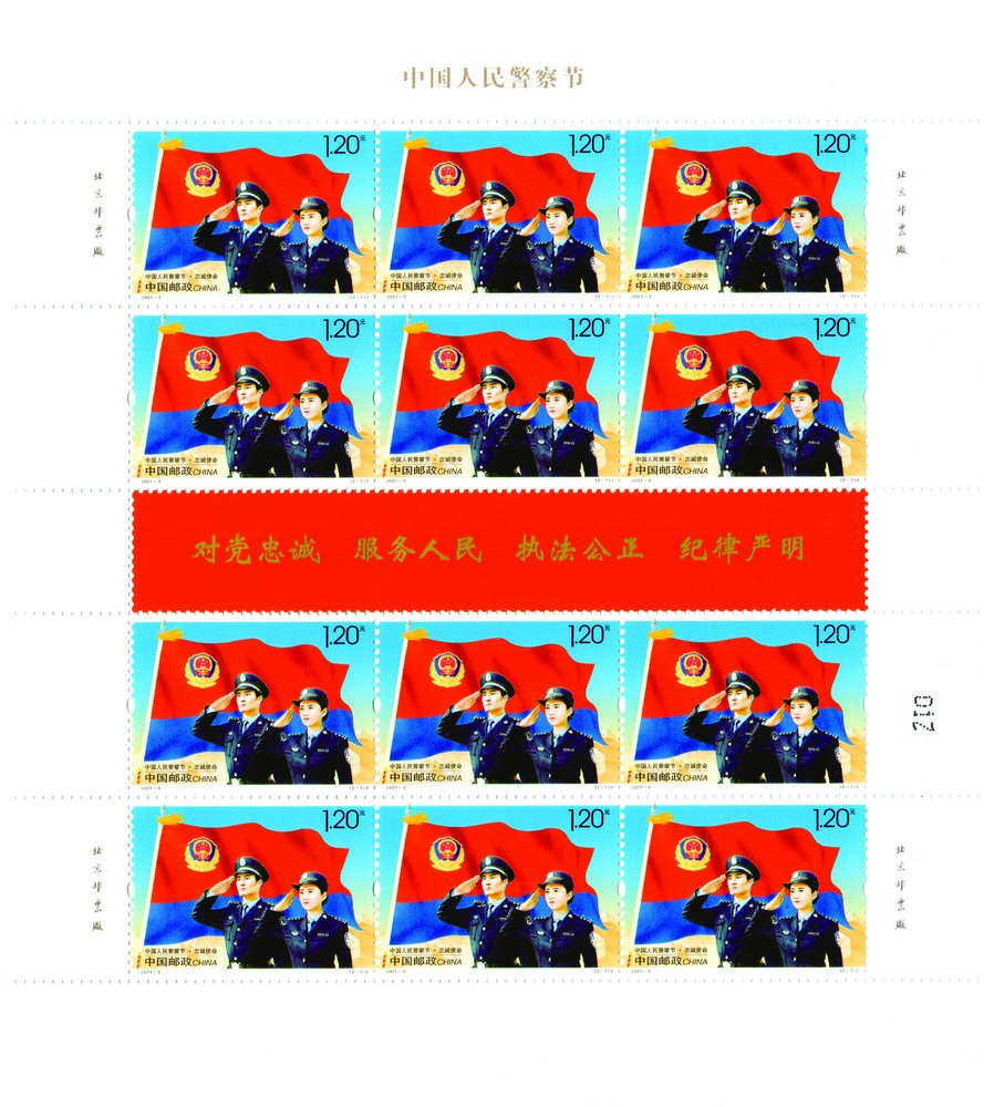中国邮政定于2021年1月10日发行《中国人民警察节》纪念邮票一套2枚,邮票面值为2.40元,计划发行量800万套。