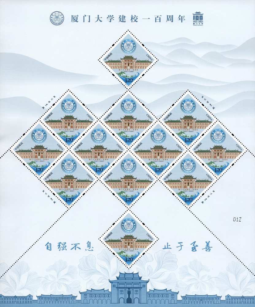 中国邮政定于2021年4月6日发行《厦门大学建校一百周年》纪念邮票一套1枚,邮票面值为1.20元,计划发行数量为820万套。
